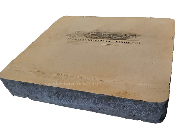 Deze druksteen werd gebruikt bij een drukkerij om de brieven te maken welke bij de Leeuw bier brouwerij gebruikt werden op kantoor