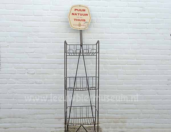 Deze rek heeft een reclame uit de jaren 60. Het lijkt erop dat er hier flessen op gestaan hebben van een halve liter